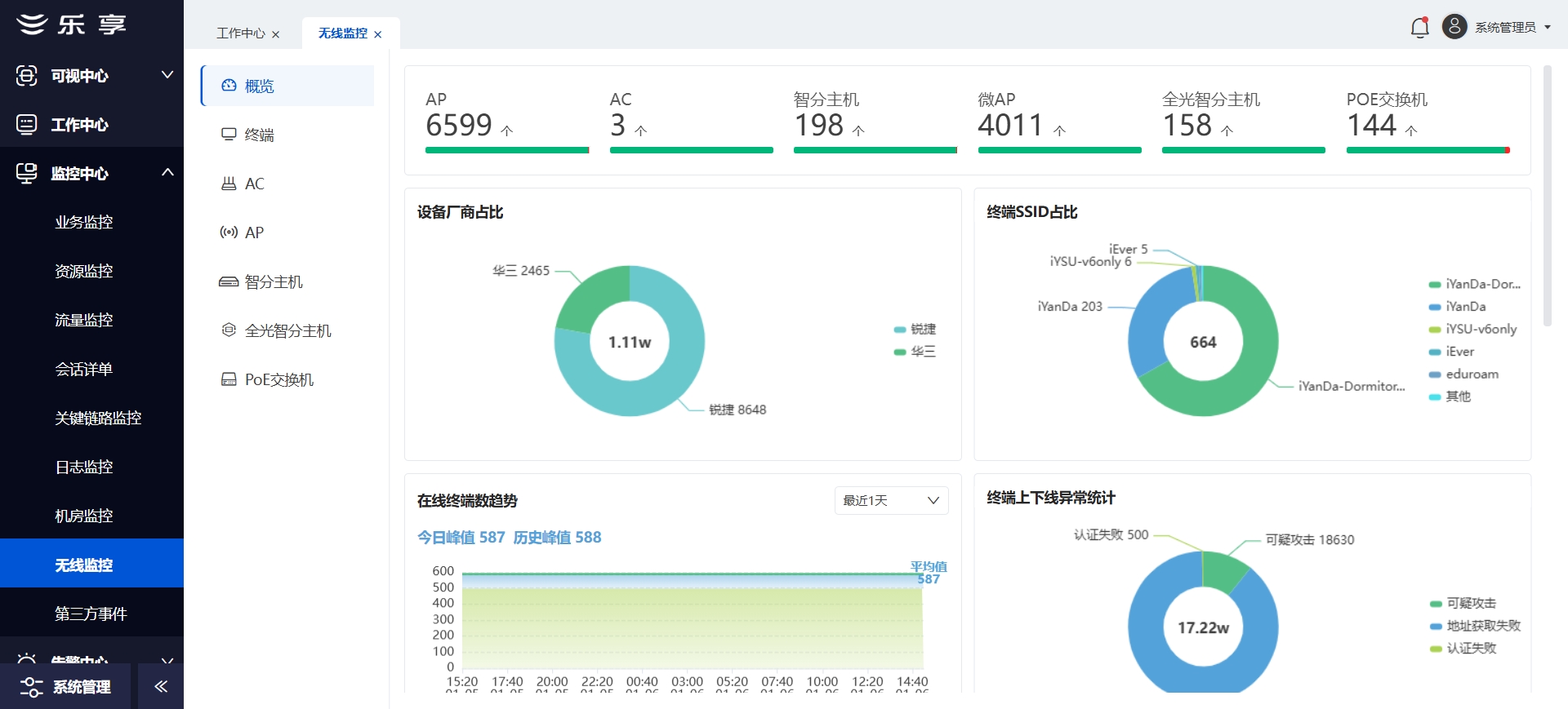 此前,这些问题都是靠人工去现场逐一查看、逐台登录设备核验,多是简单问题造成,但耗时耗力。为寻找 “技术赋能 + 经验团队” 协同发力的解决方案,学校经多方对比,引入锐捷乐享运维管理平台(以下简称 “乐享”)。该平台依托 “服务经理+网络管家 + 运维工具” 的深度价值交付模式,实现 “工具赋能、效果可见”。经过一年多的实践,四大运维痛点均得到有效解决,以下结合具体场景案例展开阐述: