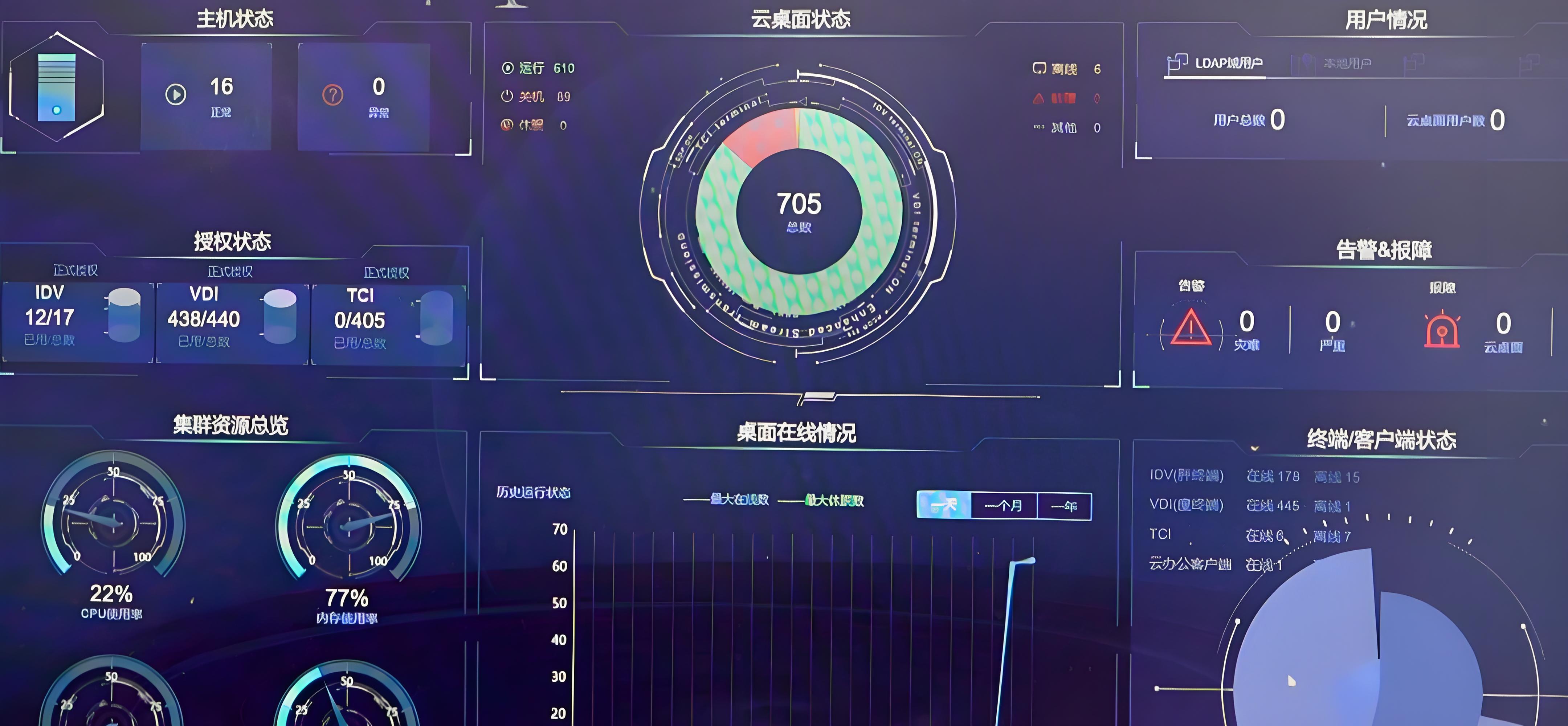 科研计算场景:满足教师科研高性能需求,支持超大型虚拟机与 GPU 调用,提供屏幕水印、外设管控、文件审计等安全功能,保障科研数据保密,同时可弹性调度资源,适配不同科研阶段需求。