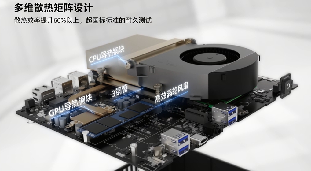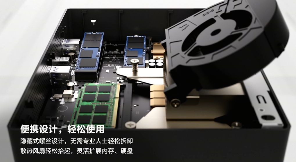 mini 的机身设计不占用过多办公空间,同时告别散热不足导致的性能降频,让 “小机身” 输出 “高性能”。
