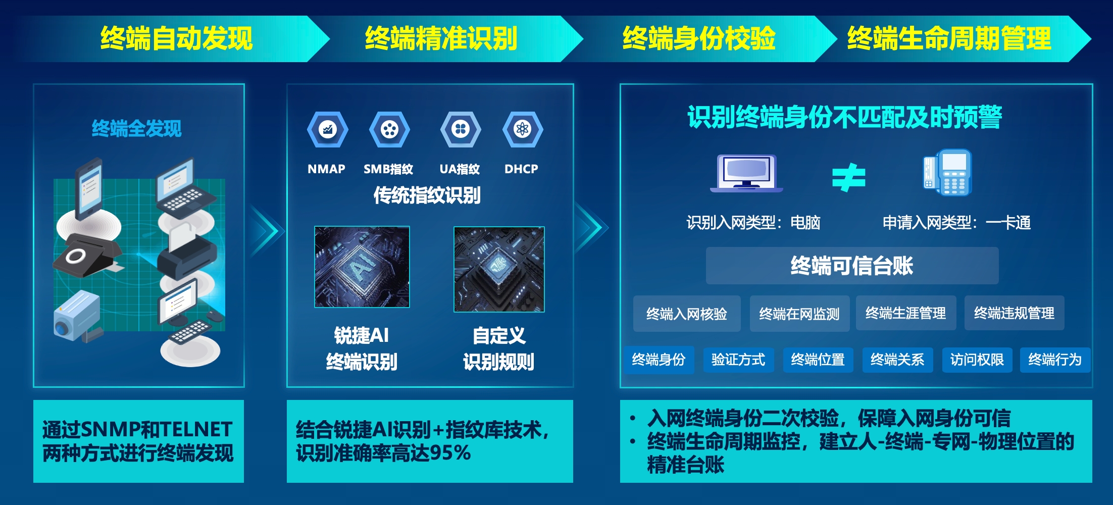 政策剖析:数智化建设下,医院诊疗终端安全管理有无革新方案?锐捷网络提供医疗内网全类终端精准运维解决方案,响应国家智慧医疗新标准。方案覆盖终端入网、在网、离网全生命周期管理,创新采用无客户端审批入网、端口级ACL精细化管控、AI身份库自动识别及DHCP动态地址分配技术。有效解决医疗物联网设备准入难、安全风险高、物理定位不准及IP资源浪费等问题,实现终端资产可视化运维,保障诊疗业务连续性,助力公立医院高质量发展与新质生产力落地。