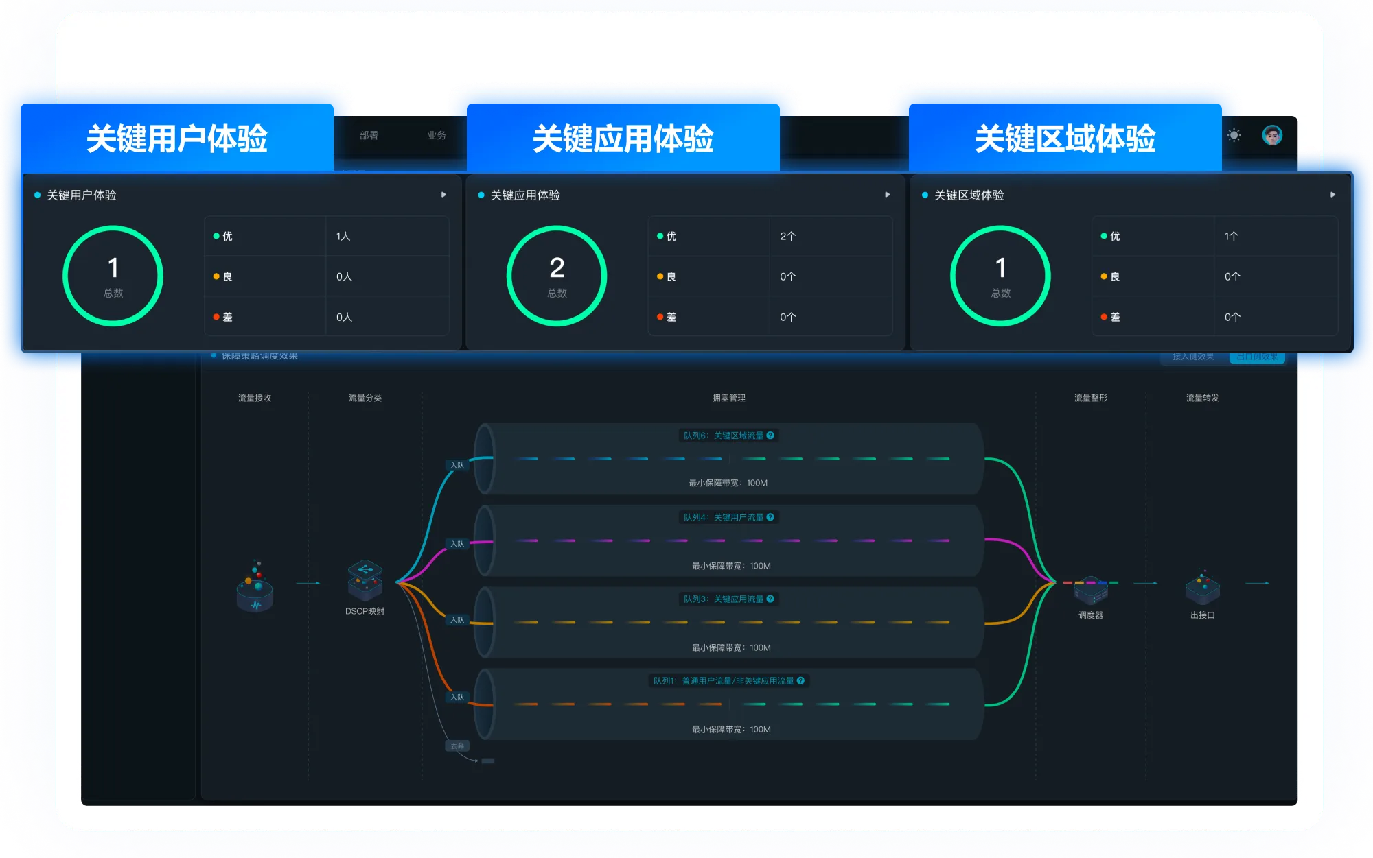 3V立体保障:对“关键用户、关键应用、关键区域”等3个VIP维度,进行端到端体验保障,保障核心业务0卡顿需求。