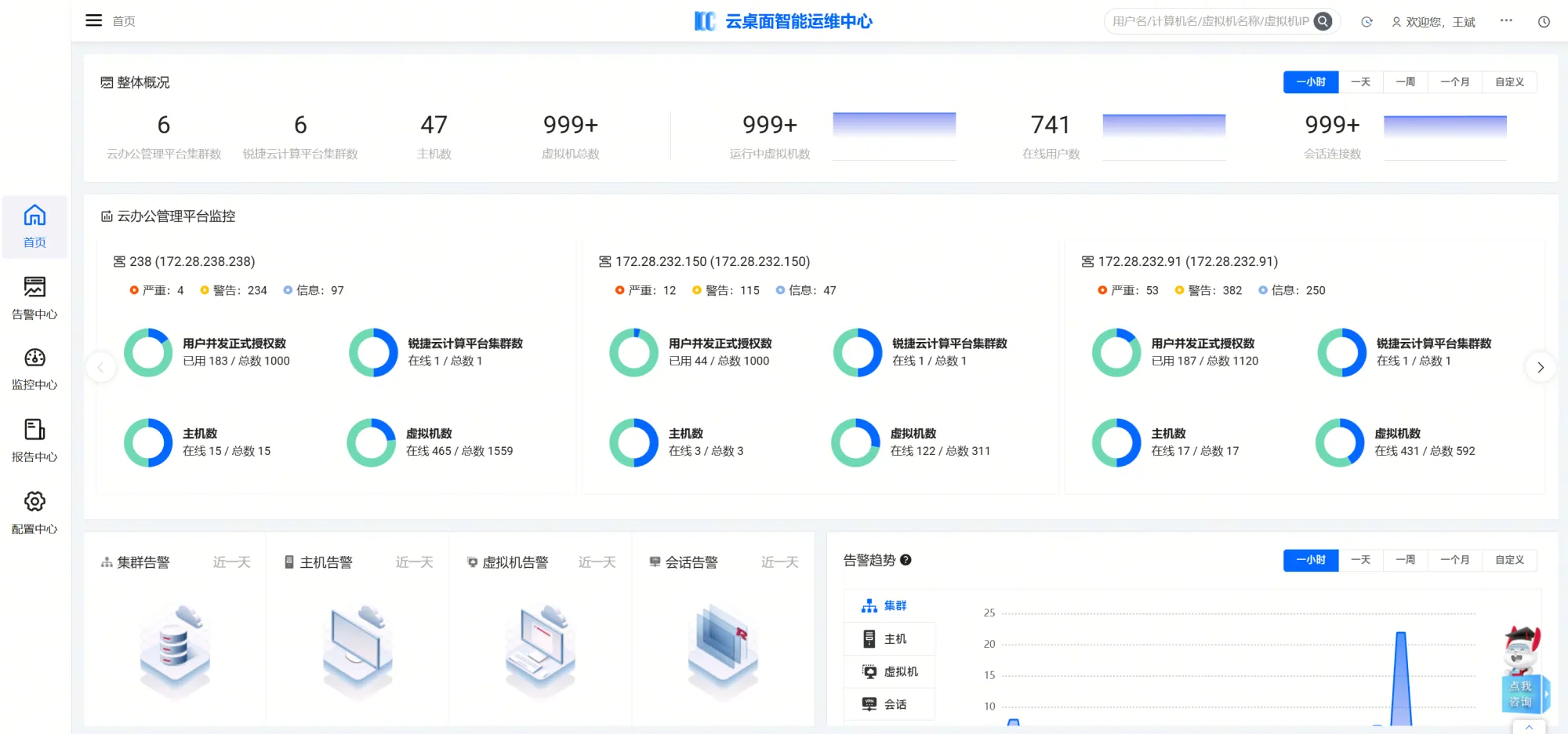 智能高效运维:基于IOC智能运维平台,支持桌面批量部署、应用热更新与用户一键自助还原,大幅提升IT运维效率与响应速度。
