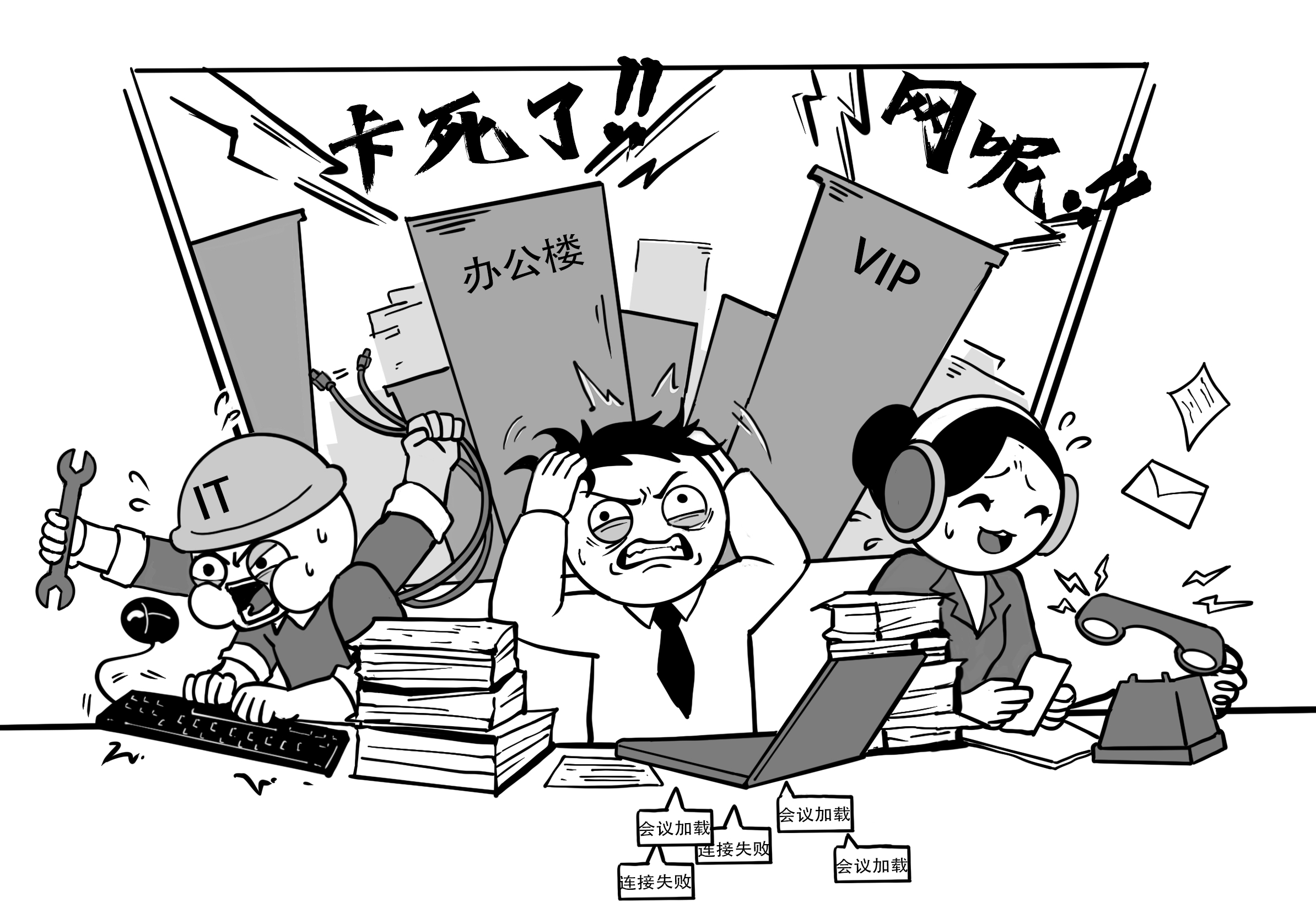 “领导会议经常卡顿,研发人员因网络问题延迟提交代码,项目进度直接受阻。”