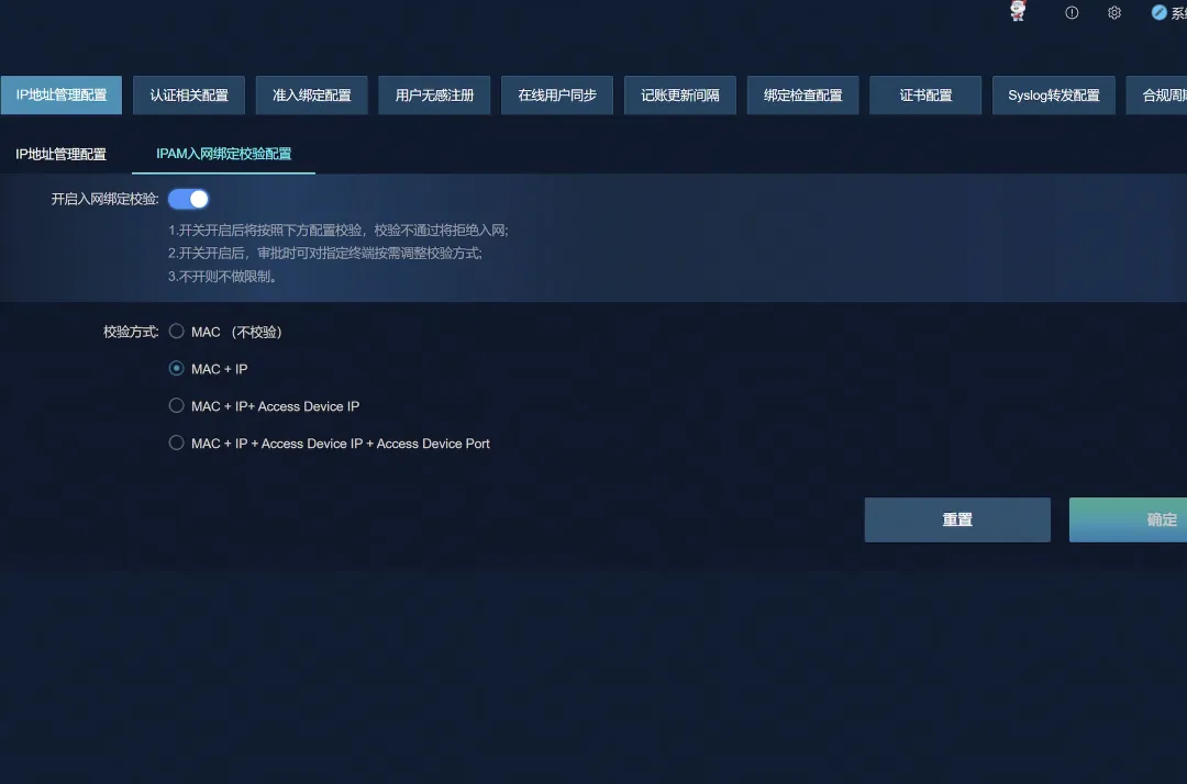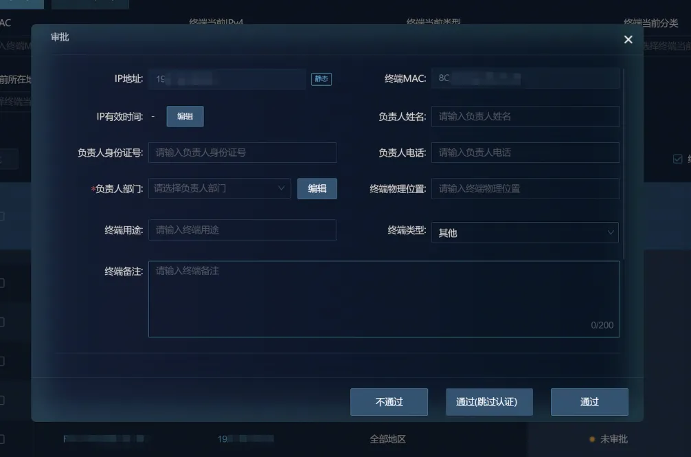 在终端IP地址变更或被MAC仿冒时,系统会自动阻断IP地址变更的入网请求并重新审批,保证终端在网的身份唯一性,有效防止了非法接入和仿冒行为,提升了网络安全性。