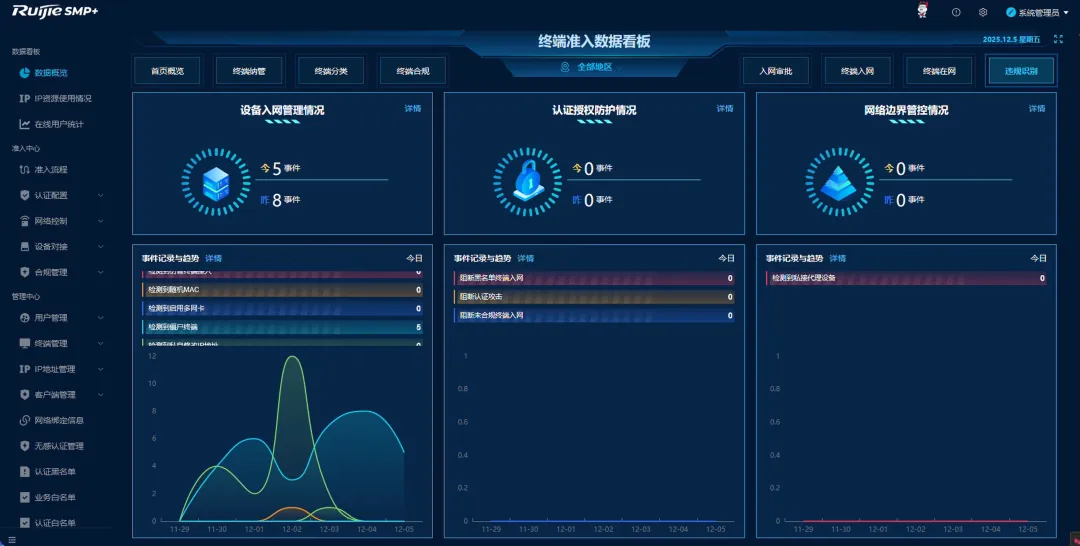 如今,通过锐捷SMP+准入系统,当终端离网达到阈值时间后,系统会自动释放IP地址、准入授权,并清理僵尸终端信息、准入记录等日志,有效解决了资源浪费问题,为医院节约了大量授权成本。