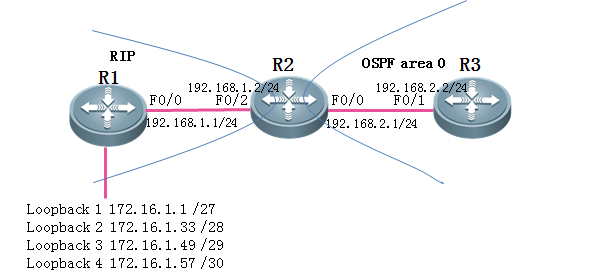 R2(config-router)#redistribute rip subnets //将rip路由重分发进ospf,必须加subnet