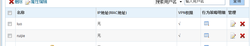 在上网实名策略界面点击查看在线用户,会出现目前认证成功的用户: