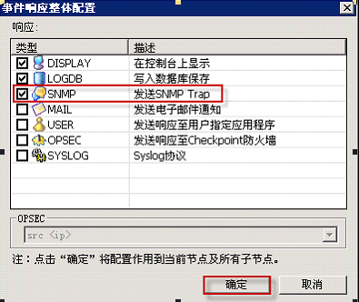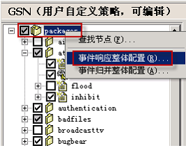 1. IDS管理台配置中,如下图所示,右击“packages”>单击“事件响应整体配置”,在打开的界面勾选“SNMP”选项,然后单击“确定”如下图: