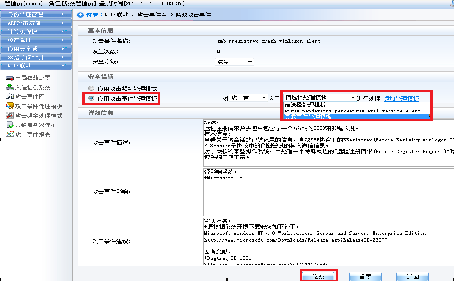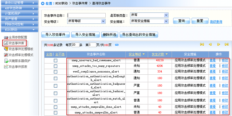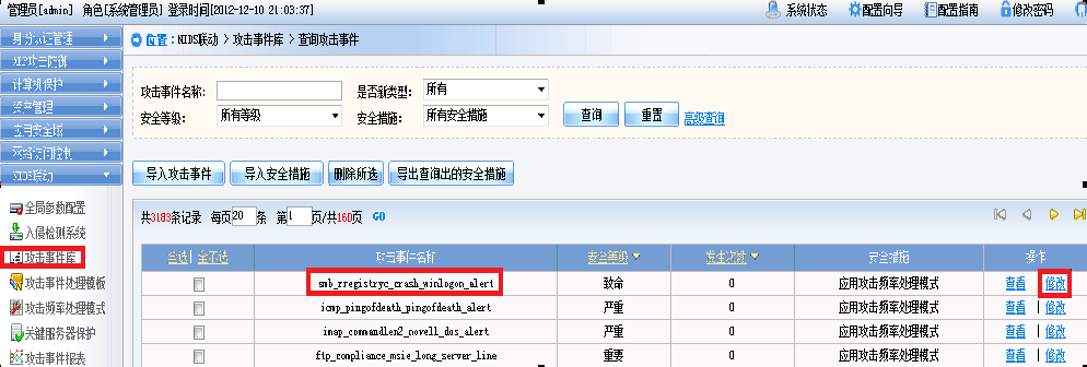 3)在SMP管理界面,依次点击“攻击事件库”-找到需要独立处理的攻击事件并点击修改。