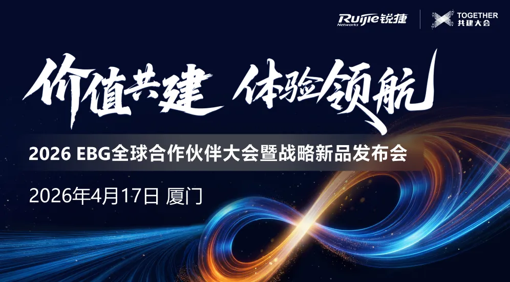 锐捷网络2026 EBG全球合作伙伴大会暨战略新品发布会,4月17日厦门举行。聚焦园区网、无线、云桌面、数据中心等核心产品,发布渠道扶持政策与生态合作策略。立即报名参会,抢占AI时代增长机遇。
