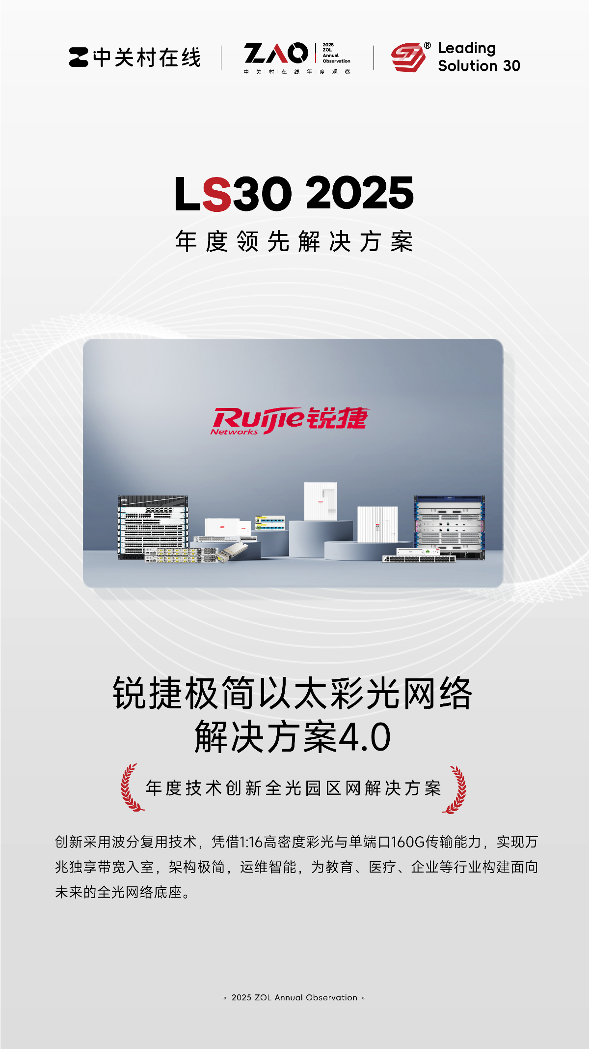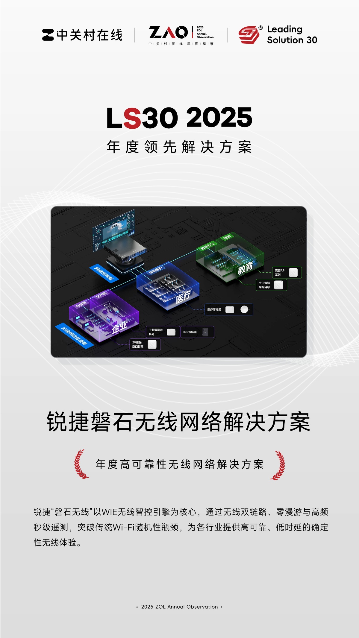 近日,在ZAO 2025中关村在线年度观察评选活动中,锐捷网络凭借深厚的场景化创新实力,交出了一份高分答卷,一举斩获多项重磅荣誉: