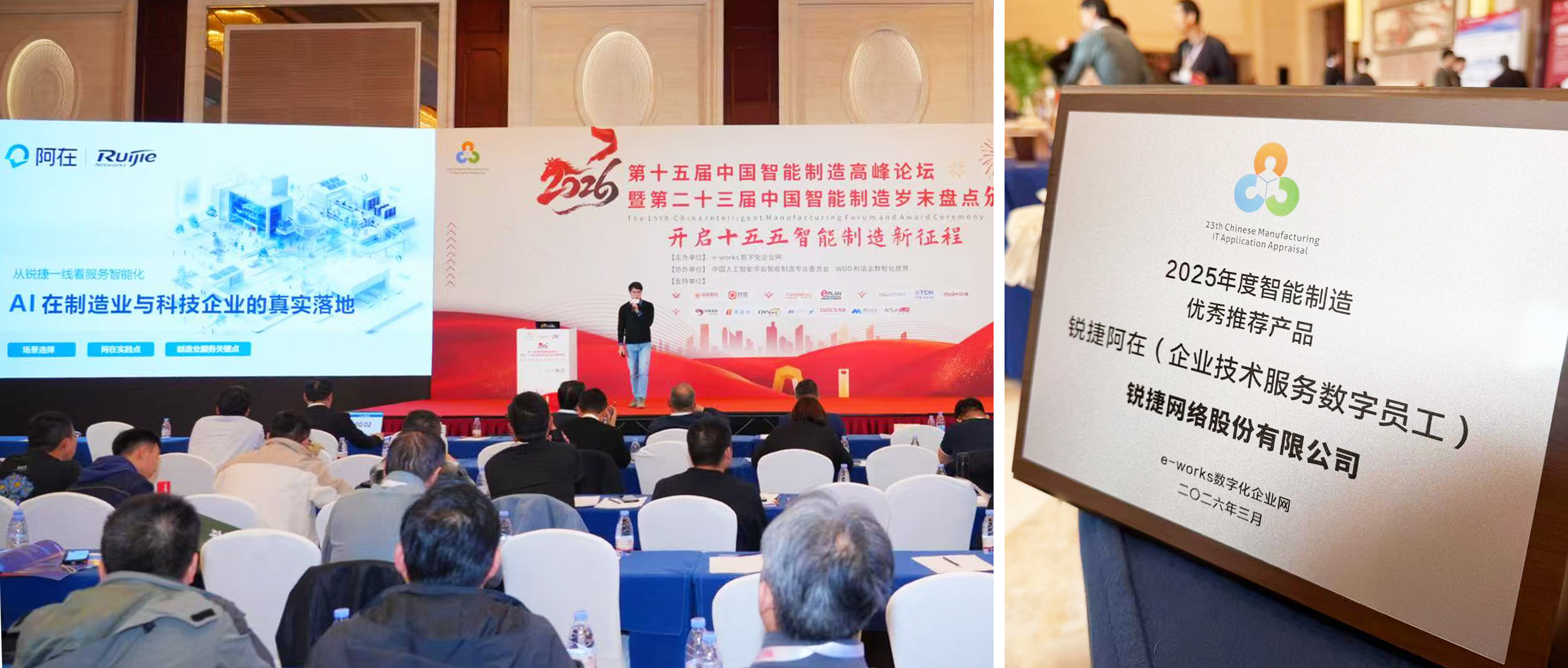在国家“十五五”规划开局之年,智能制造领域迎来开年盛典--“第十五届中国智能制造高峰论坛”在京举行。自2016年起,AIA BU将AI深度融入锐捷内部业务流程,在复杂服务场景中沉淀高标准知识体系,孕育出懂业务、可持续进化、贯穿全链路的“阿在——企业技术服务数字员工”,荣获「2025年度智能制造优秀推荐产品」奖项,标志着工业AI正从“工具试水”迈向“全链路价值深耕”的新阶段。