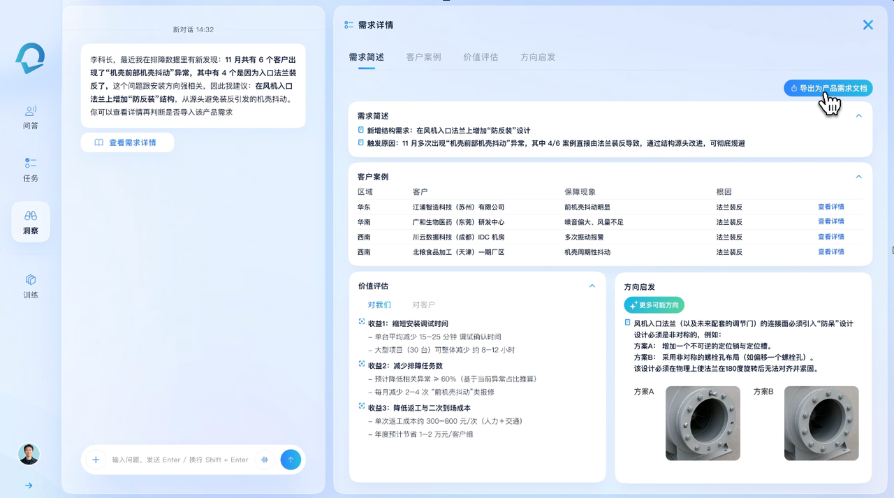 阿在并非冷冰冰地输出答案,而是全程陪伴服务——从客户开口的第一句,到问题解决后的满意感知。通过全流程数据沉淀,阿在打通了制造企业“服务—研发”的割裂链路,从服务数据中提炼产品迭代的核心线索,助力服务环节从成本中心向价值中心转型。