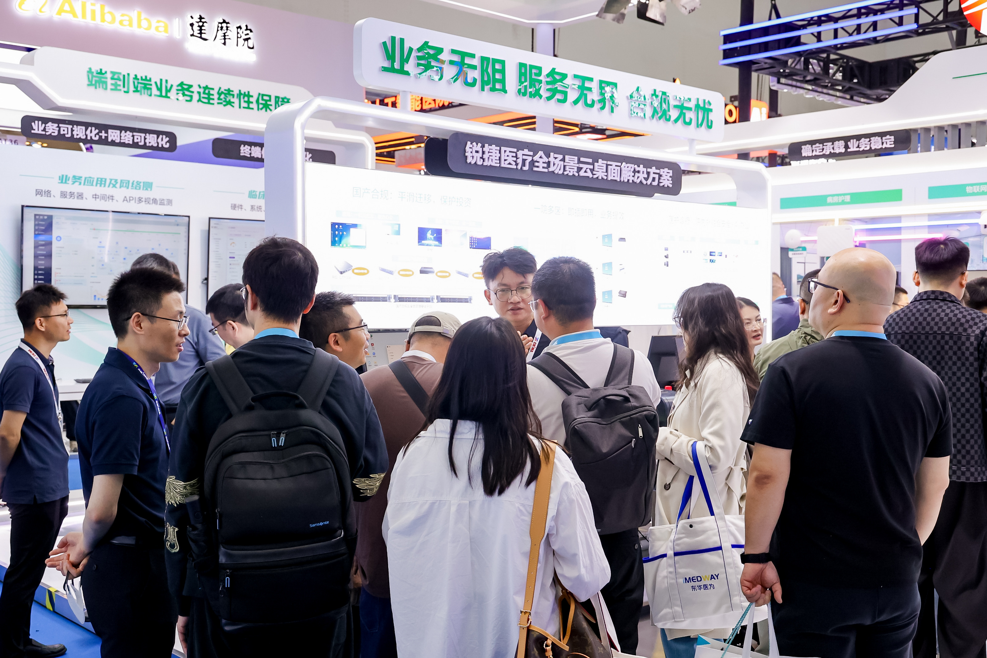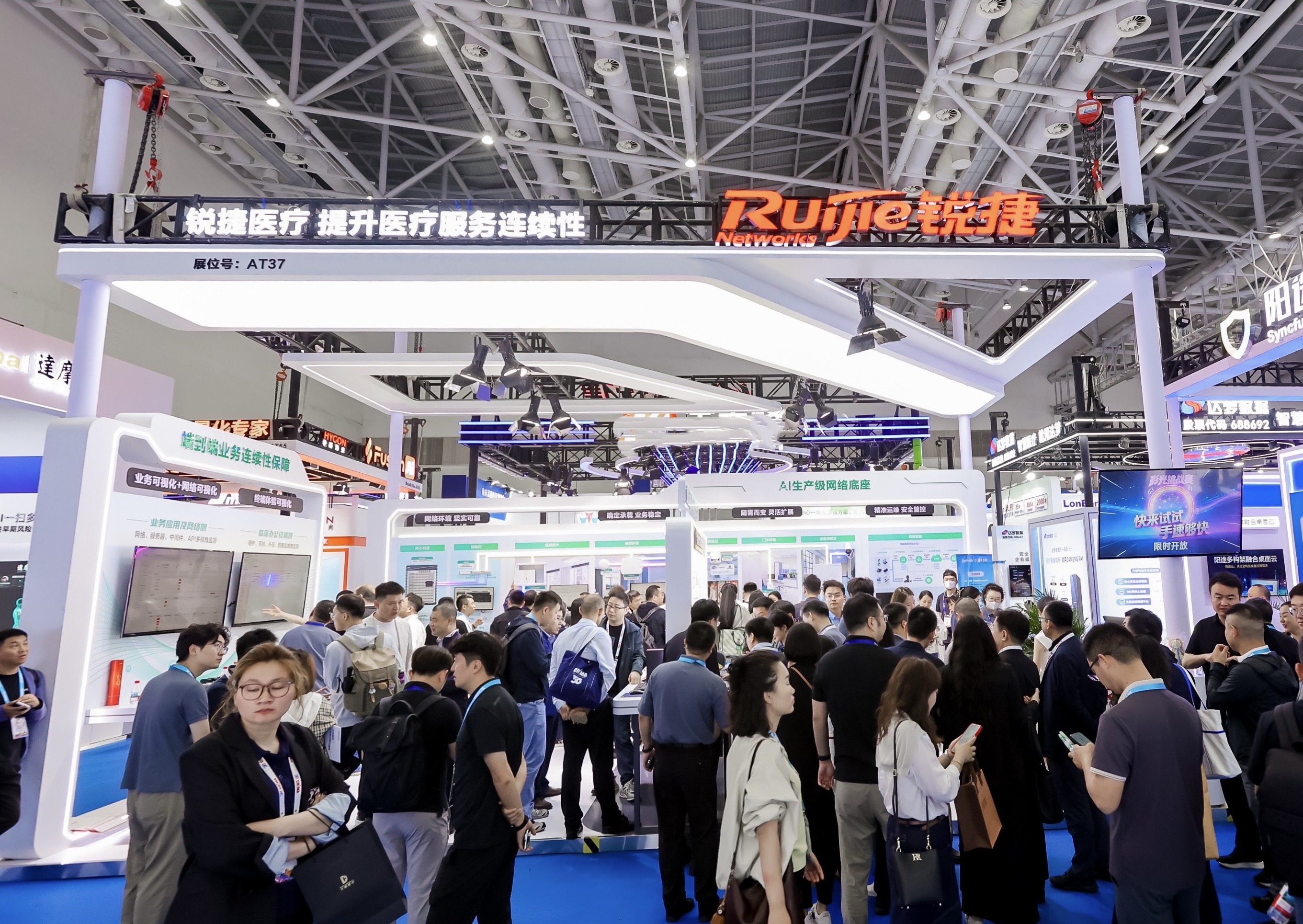 4月24-26日展会期间,锐捷网络医疗信息化专家团队将全程驻场,与行业同仁深度交流,分享智慧医院建设实践经验,探讨医疗AI落地、网络安全运维、终端高效管理等热点话题,携手推动医疗信息化产业创新发展,共筑健康中国数智新生态。