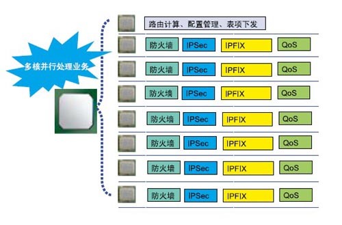 多核CPU技术的发展为业务路由器的分布式业务处理提供了基础,它的出现为网络复杂的高性能处理带来了可能性,也是业务融合背景下的政府、能源等行业及大中型企业核心业务路由器的必然选择。
