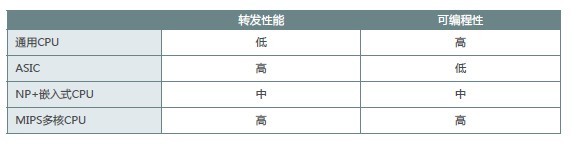 3) NP+嵌入式CPU架构。最初,各厂商曾尝试采用NP代替ASIC,原因在于NP在保留ASIC的高吞吐的特性同时具备简单的可编程能力。这样,设备可以在保证吞吐不受影响的情况下进行一定的智能处理。但是NP的可编程能力有太大局限性,导致设备智能处理能力较弱,依然无法满足用户对网络的期望。