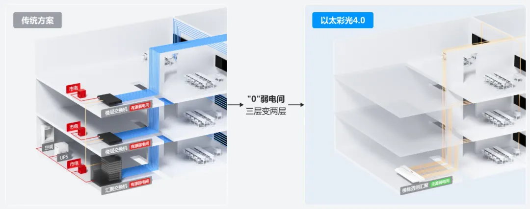 近几年,AI浪潮风起云涌,相关应用迅速普及。园区网面临的压力和挑战,就更大了。那么,怎样才能更好地应对这些挑战呢?答案就是——推动园区网全光化。