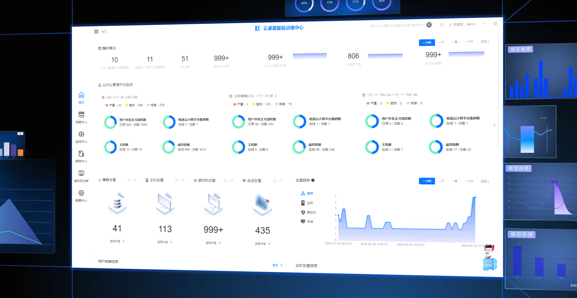 面对公司成百上千台云桌面,多个集群的数据仿佛是一个个孤岛,排查一个问题要在多个管理平台之间来回切换,查问题简直像在“破案”。 遇到难以捉摸的性能问题,只能亲自跑到用户工位旁“蹲点守候”……